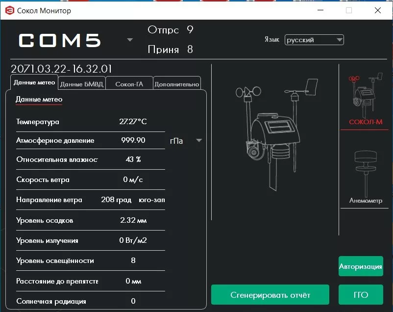 ±(0,2+0,05∙М), где М – измеренное значение интенсивности осадков |